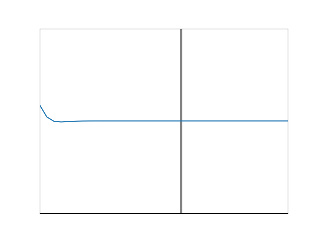 In Figure 18 we have the case of just exceeding the critical angle, where the wavefronts in the air region must eventually decay to nothing. When we were below the critical angle, we had wavefronts extending to negative infinity, so it is reasonable that just as we transition into an exponential decay, it will be a long one, and it will meet the boundary with a very low slope, similar to that in Figure 13. This means that little phase shift in the reflected wave is needed to ensure that the total electric field changes smoothly across the boundary. Hence at the critical angle, the phase shift should be zero, and it is.